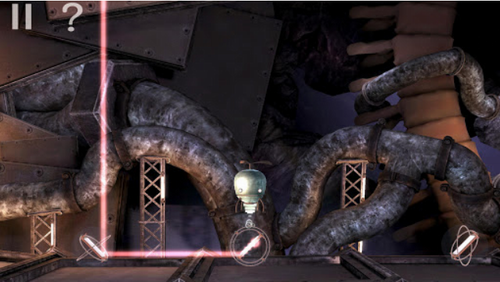 3、游戏的操作很简单,玩家通过手指牵引控制机器人移动,而点击小机器人则会触发机器人的吸取功能,该功能类似于吸铁石,玩家经常会运用它搬石头或者开门之类的。