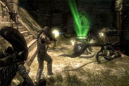 这是一款画面有点恐怖的射击类策略游戏,异形入侵地球,作为铁血战士的你踏上了保卫地球的道路,你的任务就是消灭异形,控制皇后,将人类从异形的控制下解救出来,成为最强大的救世主,而且在游戏中玩家将扮演化身长相可怖的异形兽,亦或是身材矮壮的铁血战士,在昏暗的走廊中搜寻猎物,为自己的种族拼上性命与对方决战。