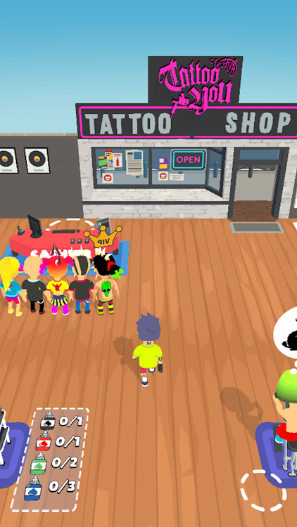 3、在这个游戏中,您将有一个纹身摊位模拟器,去完成任务。