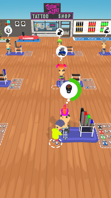 纹身沙龙商场游戏(Tattoo Arcade Idle):一款很不错的经营模拟类型游戏,成为纹身爱好者想去的纹身沙龙,可以自由的创建自己的纹身沙龙布局,别忘了!即使有一个好的纹身沙龙管理运作,你也可以获得很多利润,为更多的顾客提供服务吧!