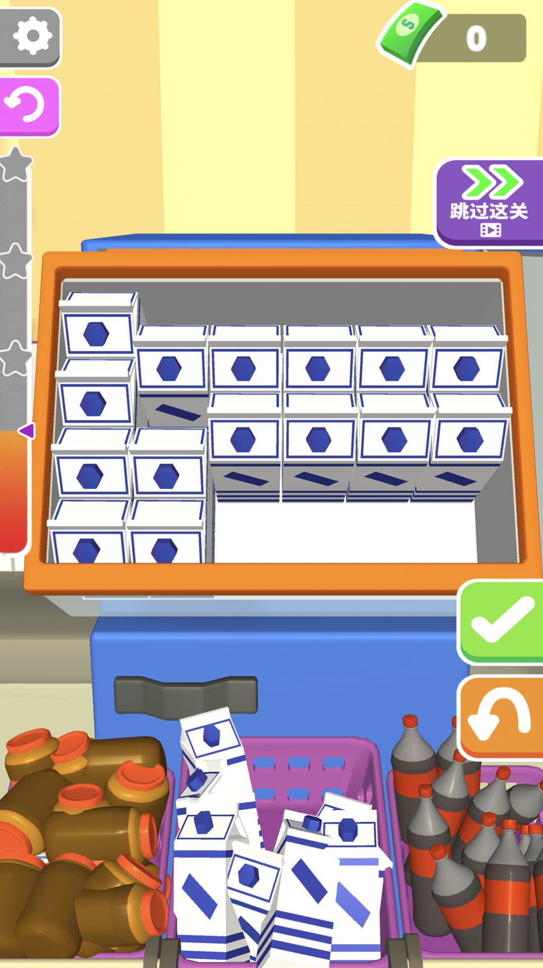 3、购物篮不断的清空,一个接一个的放置在合理的位置上玩得十分开心。
