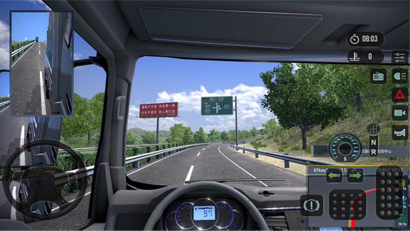 第一人称视角,自由选择丰富的卡车型号,驾驶你的卡车完成各种任务。