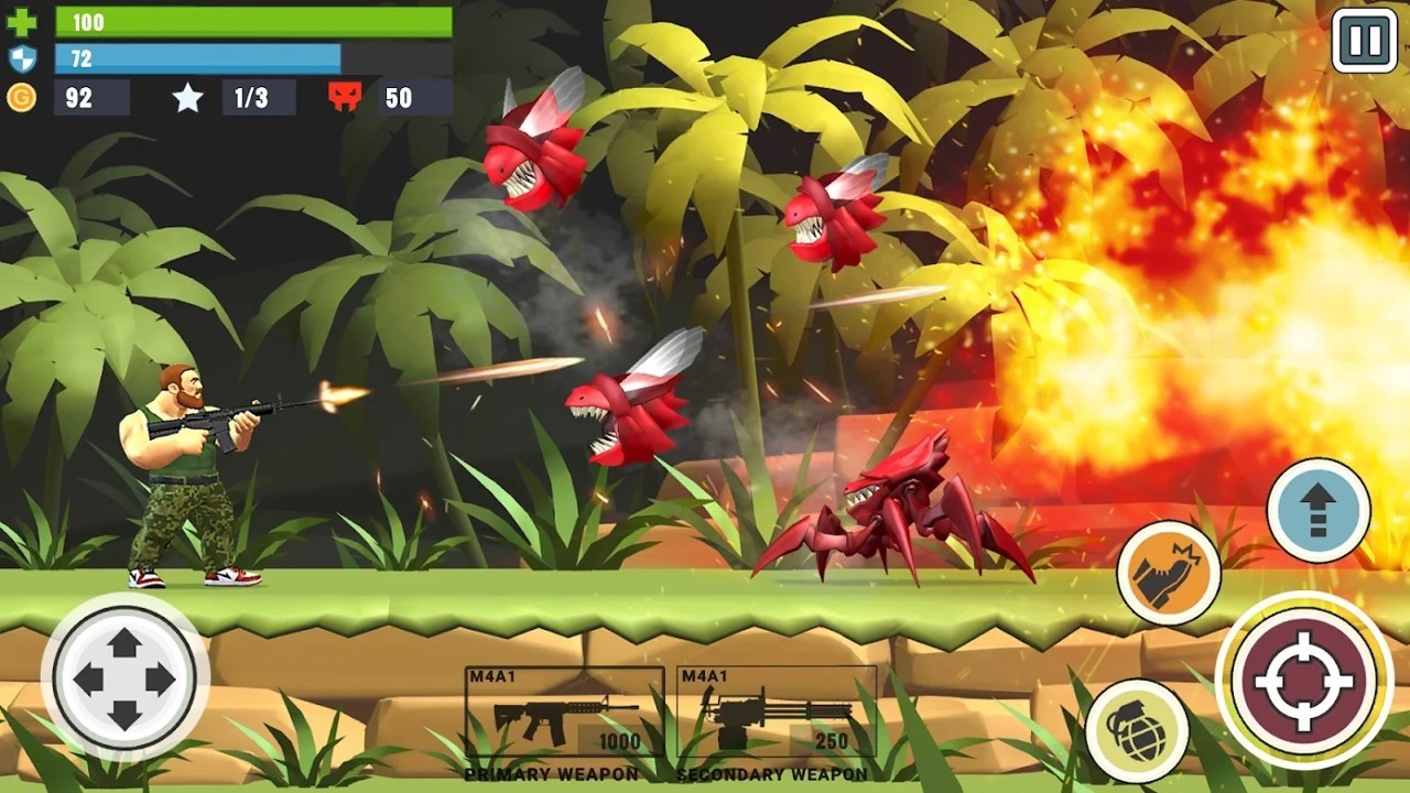 一款卡通风格的横版动作射击游戏。游戏的操作方式是根据大多数玩家的游戏习惯进行射击。