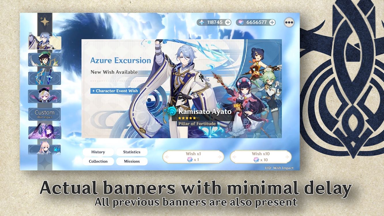 3、所有角色或武器采用官方基础概率,并且保底等玩法也都是完全一样。