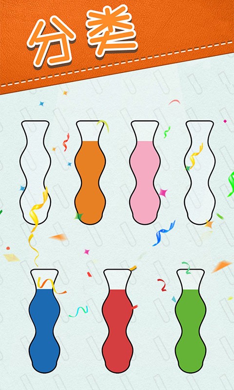 颜色拼接是一款简约风格画面的休闲烧脑类游戏,玩家需要在试管之中将不同颜色的液体开始你的合成挑战,随着你的成功游戏难度也会增加试管的数量也会变多,通过自身的努力将瓶子中所有颜色的液体都进行重新的归纳整体,看起来赏心悦目,非常有成就感!