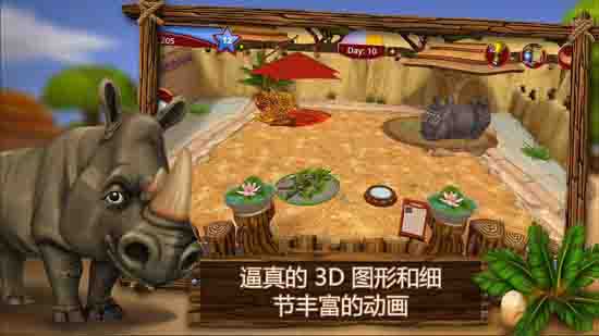 2.游戏中有丰富的场景和各种各样的非洲野生的动物,玩家可以选择不同的环境场景来观察照顾各种野生动物。