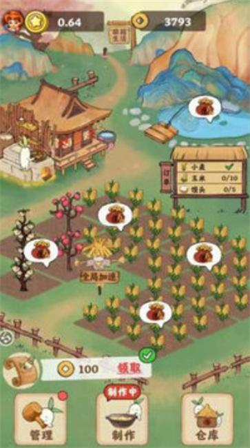 2、主要是以农家乐形式打造,你将建造打理自己的小院,画风比较的解压。