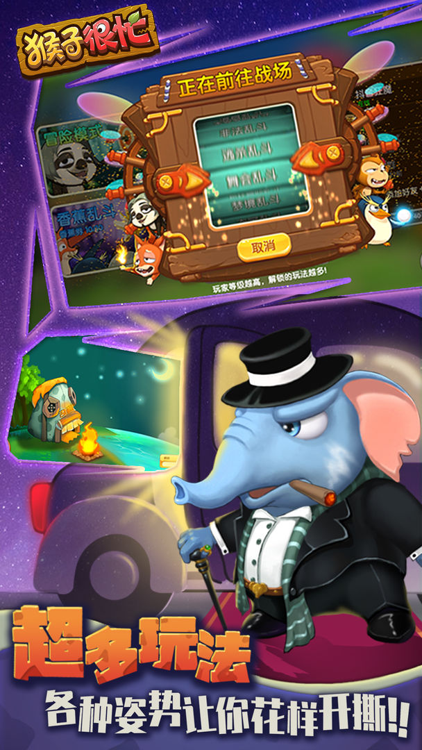 猴子很忙是一款简单好玩的动作弹射手游。公平的竞技对战,策略的游戏玩法,引用正常物理引擎,你需要弹射小猴子去拯救更多挂在树上的小动物~搞怪的游戏风格,闯关拿豪礼,无论是个人还是组队都趣味无穷,高清精致的游戏画面,非常有趣的对战玩法,给你绝佳的游戏体验。