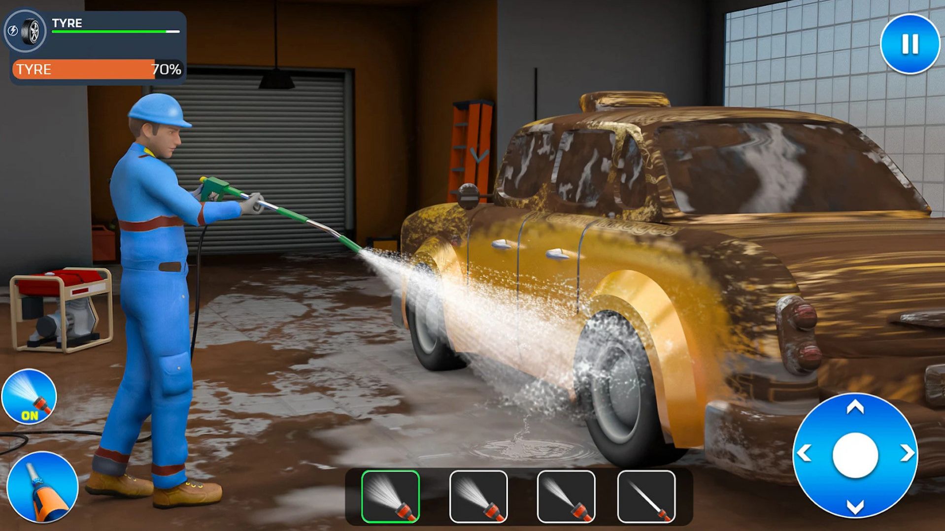 高压水枪洗车模拟器游戏是一款利用高压水枪来模拟洗车的休闲类游戏,你将会模拟一位洗车的工人,为所有的车主来提供精致的洗车服务,学会使用高压枪来进行洗车的模拟,你需要达到顾客洗车的要求,这样才会让顾客获得好评,将会为你的店铺带来更好的生意。