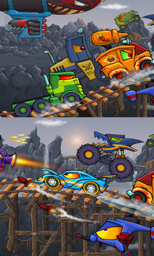 3、采用卡通休闲的风格,2D横版闯关玩法,操控你的赛车和别人开展热血超燃的竞技战斗。