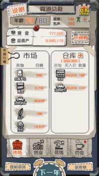 在游戏中玩家将化身为身上只有一丁点钱的普通人,然后体验通过倒卖物品来赚取一个亿的过程,游戏是以文字剧情的方式进行,还有不同的触发事件等你来体验,来打造你的商业帝国。