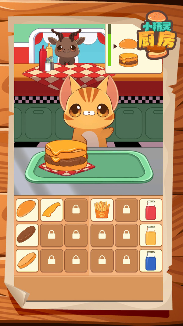 小精灵厨房游戏是一款卡通画风模拟汉堡育成