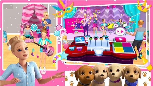 4、在这里,您可以与小狗一起建造美丽的芭比梦之屋,并创建您的梦想家园。