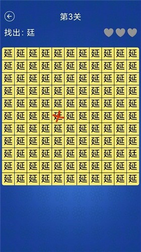 手游很考验小伙伴的观察能力,一般每一关中会有各类各样的相似度很高的汉字,比如太和大,小伙伴需要仔细并且尽快的找到这些不一样的字,注意各个的汉字的细微变化,这样才可以找到汉字来进行闯关,此外三次的机会让小伙伴能够有体验,合理的利用也很重要