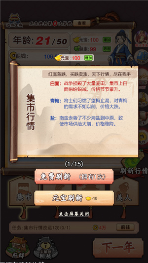 3.每天每种资源的价格都在变化,有五次免费刷新。