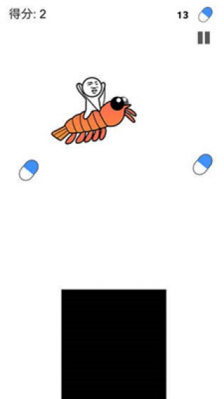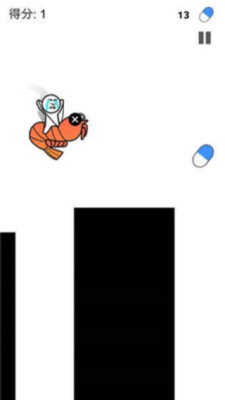 2、巨型龙虾将带着小人急速奔跑,你只需控制它的跳跃跳过障碍即可过关。