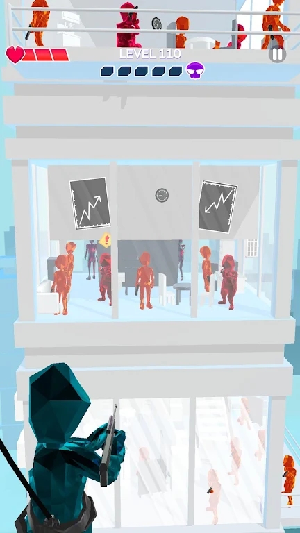 滑动屏幕控制射击的方向,射击是自动的,只需要瞄准敌人就可以了。在射击的同时要避免敌人的攻击,你只有三次机会,一旦没有了机会,你也会失败。用手中的武器射击敌人,每消灭一个敌人就会获得相应的金币奖励,不过神枪手再厉害,也要小心敌人的靠近与攻击哦,不然自己也会失败的。