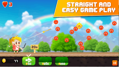 2,以射箭保护自身安全,使用不同的技能,更有效率闯关,操作简单,只需轻敲即可,经典的像素风格设置游戏的背景。
