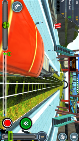2、列车驾驶操作简单流畅,玩家可以切换各种视角,第一人称和第三人称,甚至是从前往后看都可以,根据箭头指向将列车开往指定的地点,注意每个路段有不同的限速提醒;