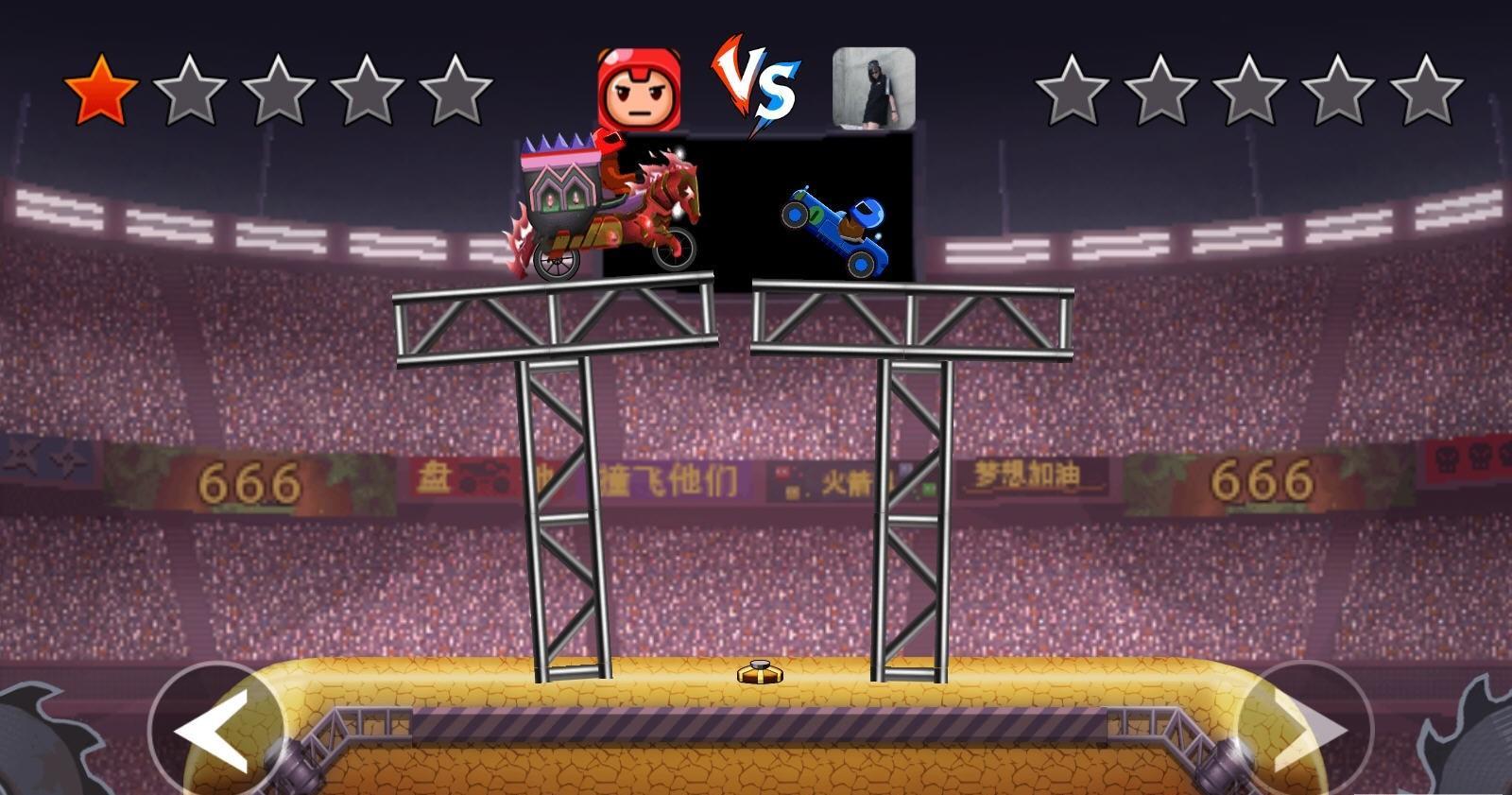 3、我们可以去进行一对一的竞技,而且每辆高级的汽车都是拥有着武器和技能的,我们就可以依靠这这个去获得胜利!