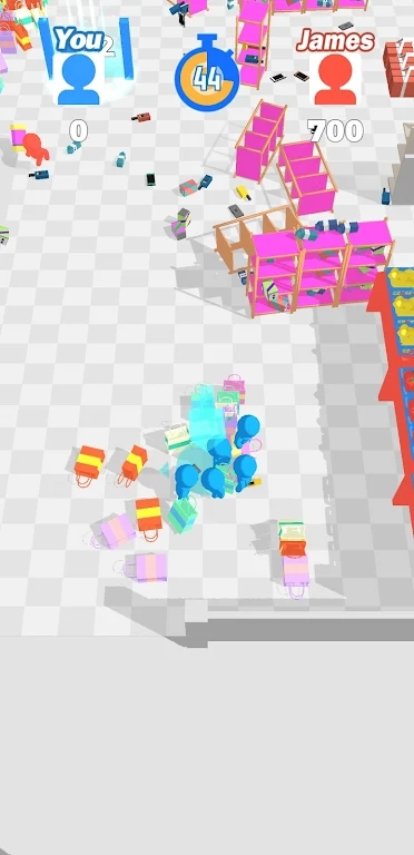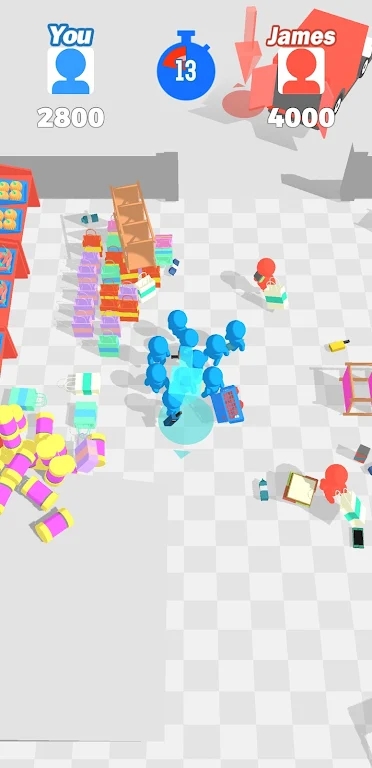 你必须控制自己的购物团队冲入超市展开抢购,但是对手也会在同一时间内和你展开竞争,甚至会给你捣乱造成麻烦。但是只要你能够在规定的时间内,抢购到更多价值更高的商品就能战胜对手,可不要小看对手的实力哦。