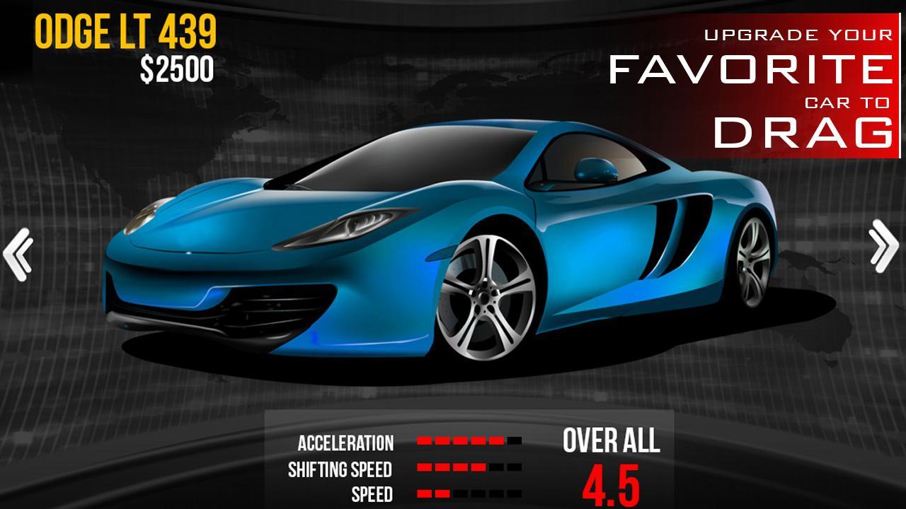 在这款游戏中,只有直线的比拼。你可以随意的改造你的汽车,通过各种有趣的零部件来不断的强化你赛车的直线行驶能力。完成比赛就能得到购买零件的钱哦!