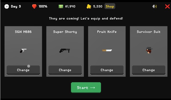 4、僵尸每天都在越来越多地出现,但是您可以购买一些武器,物品和陷阱来射击和防御它们,您可以生存多长时间?