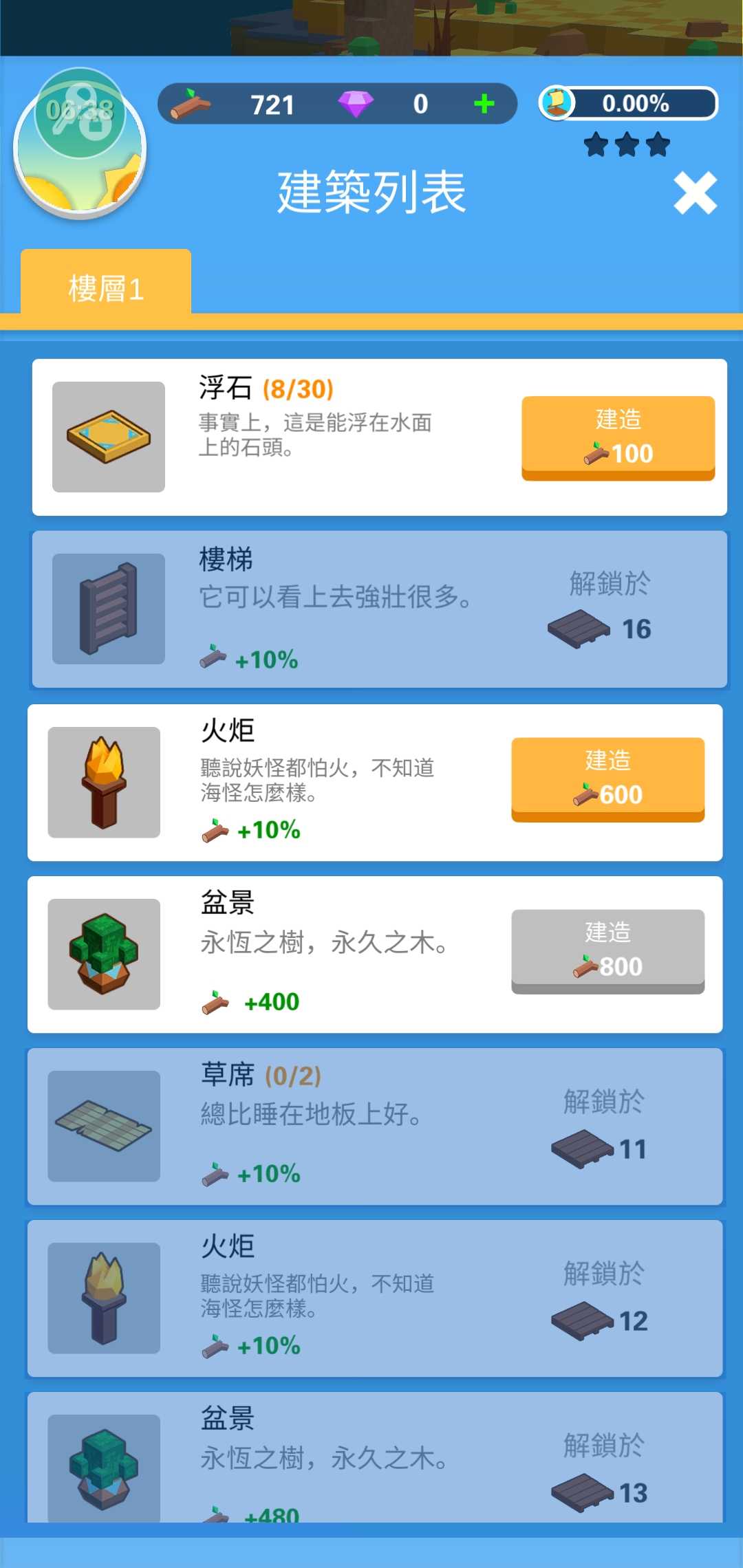 丰富的模式和内容,玩家能够轻松参与到游戏当中来进行的冒险和闯关,丰富玩法随时都可以开始,感受不一样的乐趣来进行游戏吧,更多选择以及玩法模式,像素风格游戏画面,玩家在游戏中化身方块人可以不断在海面上进行建造,可以不断扩大自己的领土,沙盒类游戏玩法非常有趣。