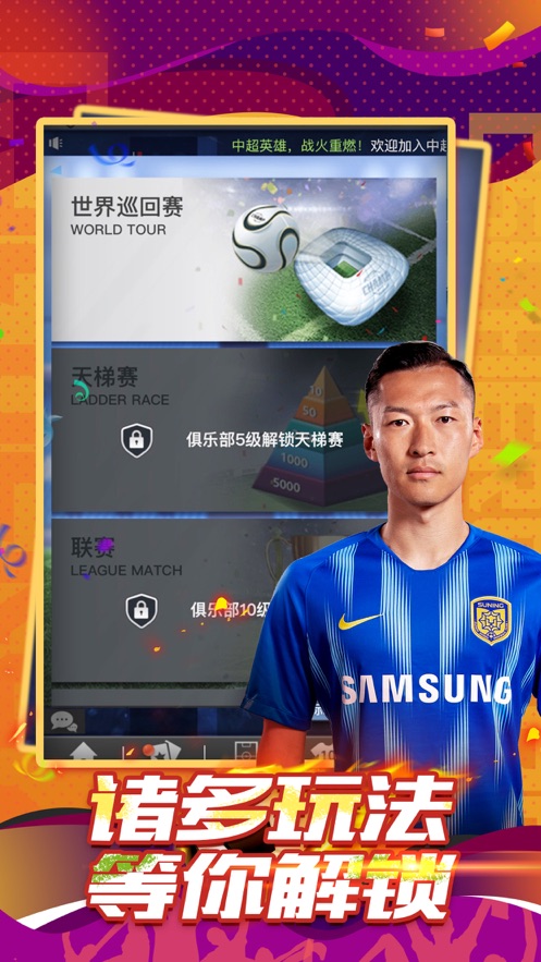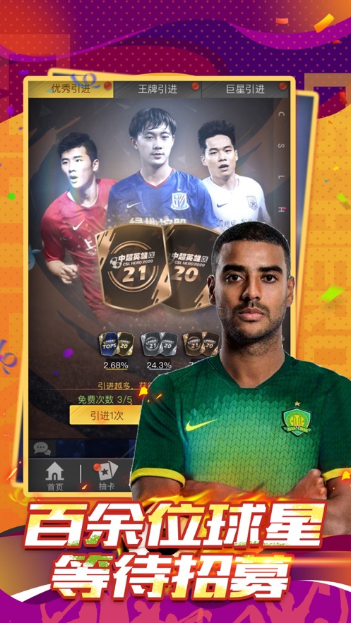 中超英雄-足球是一款非常精彩的体育竞技游戏,游戏有许多的欧冠明星球员,玩家可以招募许多的明星球员加入自己的队伍和自己一把驰骋沙场所向霹雳,足球需要优秀的战术和完美的配合,在不同的点位可以使用不同的战术去诱惑对手和误导对手,比赛非常的精彩!