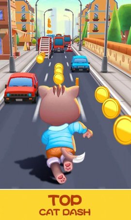 3、玩家将操控凯蒂猫,在各种环境的赛道上进行跑酷,赛道上有着许多的金币和道具。