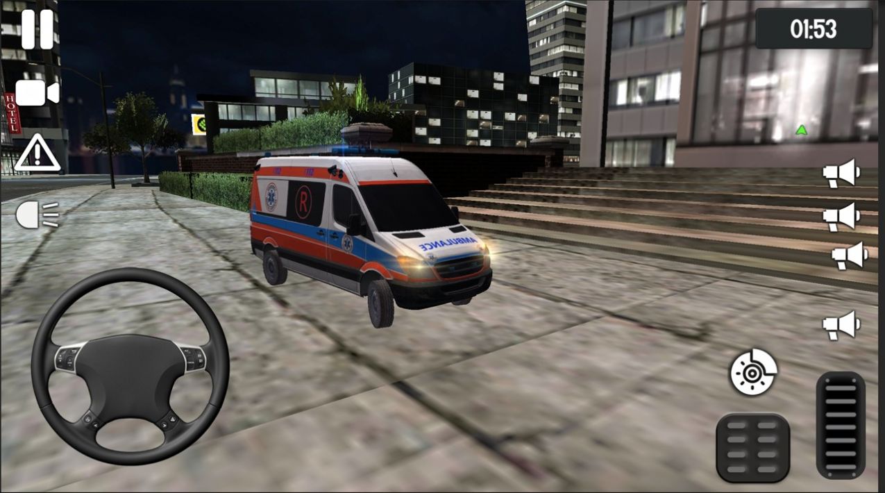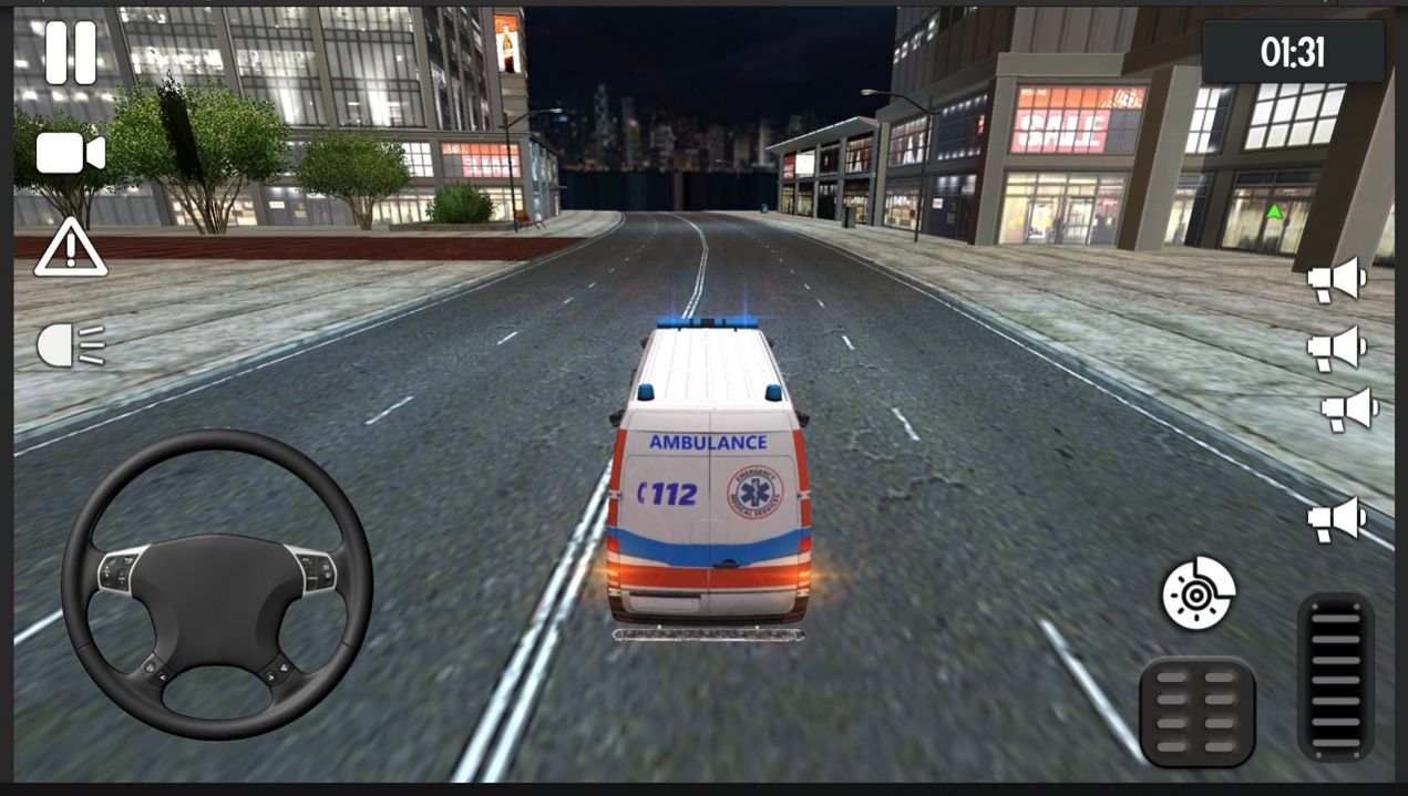 1、逼真写实的游戏画面场景为你呈现,驾驶你的救护车去开启救援冒险挑战吧,在城市拥挤的交通中,去使用救护车完成冒险;