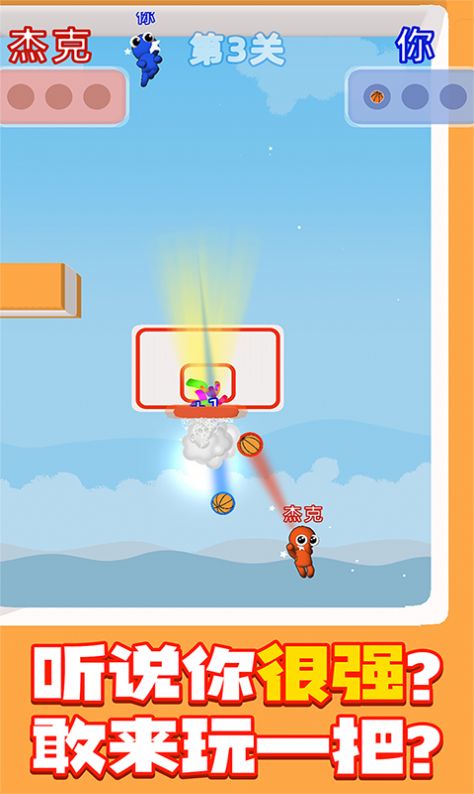 游戏中你可以通过精湛的手法来完成一个关卡挑战,在激烈的关卡中去畅快的进行对战,让你去收获到丰富的乐趣,尽情的完成pk对决任务,还可以操控着你的小人去解锁更多的技能,在不同的过程中去畅快的挑战,让你去体验到精彩的扣篮玩法。