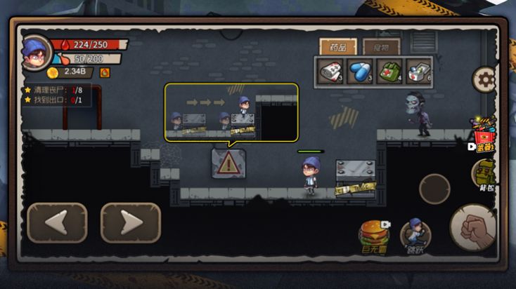 3、非常紧张的冒险氛围中,快速的将更多的僵尸打败,让自己更快速完成求生任务。