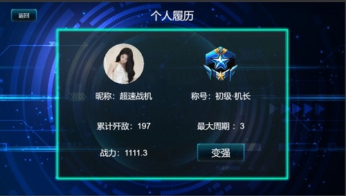 2、点开自己的战机,能够去查看到自己战机的攻击力度以及射程冷却的时间等等。