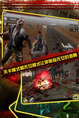 车辆上架着各种机枪,重型武器,玩家开车车辆冲进各种场景,消灭袭击我们家园的僵尸。在赛车部分,玩家驾驶车辆撞击马路上的僵尸,同时也要小心路边的僵尸,他们会不停的爬到我们的车辆上,将我们的车辆掀翻!