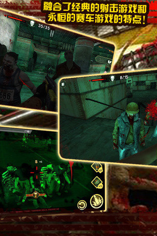 战车暴尸王是一款创新型射击游戏,融合了经典的射击游戏和的赛车游戏的特点。不仅仅包含了普通的FPS射击游戏的内容,还包含了赛车游戏的特点。在射击部分采用第一人称视角,全3D场景,3D角色,3D枪支和各种车辆,车辆各异,很多都是玩家平时很少见到的,车辆上架着各种机枪,重型武器,玩家开车车辆冲进各种场景,消灭袭击我们家园的僵尸。在赛车部分,玩家驾驶车辆撞击马路上的僵尸,同时也要小心路边的僵尸,他们会不停的爬到我们的车辆上,将我们的车辆掀翻。