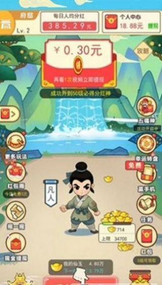 多多小财神红包版是一款玩法十分有趣的放置类赚钱小游戏。现在我们可以在游戏之中完成各种不同的小游戏挑战来获取成长积分,利用这些成长积分让你的小财神不断的升级,当他达到对应的等级之后就会为我们派送各种不同的红包哟。
