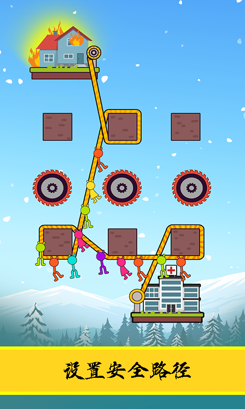 3、绳索不会自己移动,所以还需要玩家来想办法通过绳索将遇难者一一的运送到安全的地方。