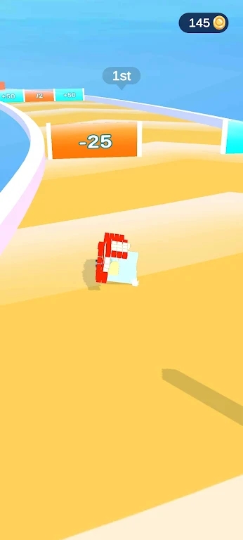 玩家不断的收集像素,组成自己的赛车,并且还要超越对手完成比赛,然后用收集到的像素块修建自己的车库或房子。但是要注意对手不止一个,而且他们的速度不比你差,唯一能够帮你取胜的就是你的灵活操控,尽量通过数值更大的通道获得更多的像素快,完善自己的赛车才能一路领先。