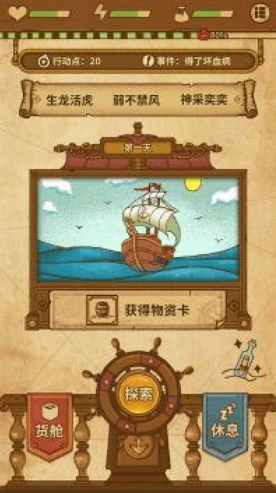 3、探索冒险途中,也会遇到种种的考验,获取卡牌,帮助通关。