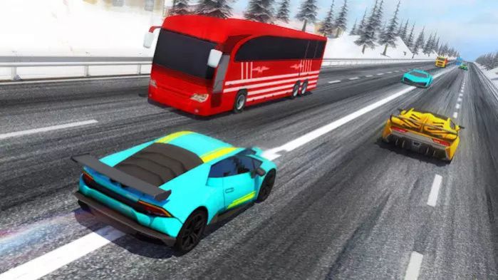 1、在交通赛车狂潮手游中用户驾驶汽车高速行驶,可以尝试更多刺激;