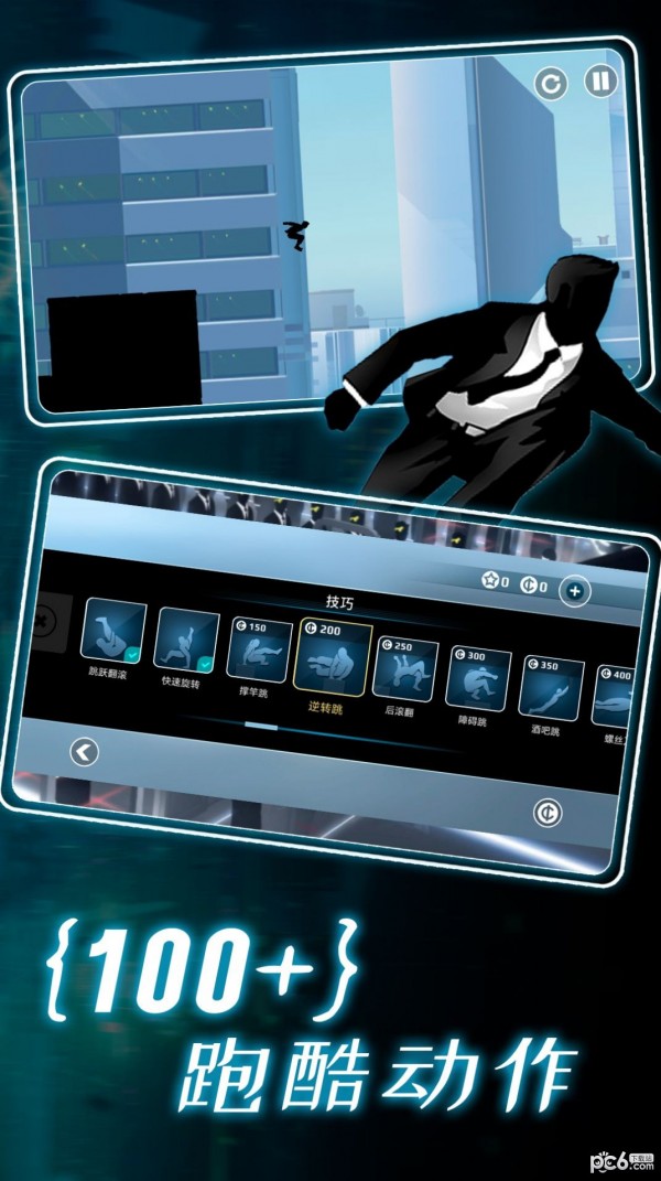 3、背景是宽阔的跑酷城市,蜿蜒的街道。