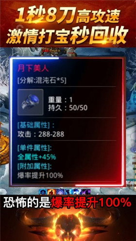 2、背景设置很漂亮,尤其是在这里,你可以看到英雄的世界在鲜明的浮雕中脱颖而出,金币和元宝二次回收,无需氪金,完美还原游戏。