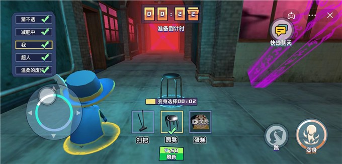 变身躲猫猫这是一款极具趣味性的躲猫猫冒险游戏。玩家自爱游戏中选择自己喜欢的可爱造型进行冒险闯关,在游戏中有着两种玩法,一就是扮演抓人的角色,在地图中进行寻找出隐藏变身的人,二就是扮演被抓的人,你需要找个合适的位置模仿变身成一个物体,找个地方把自己藏起来,不被人抓到就行,玩法十分简单体验更多的欢乐。