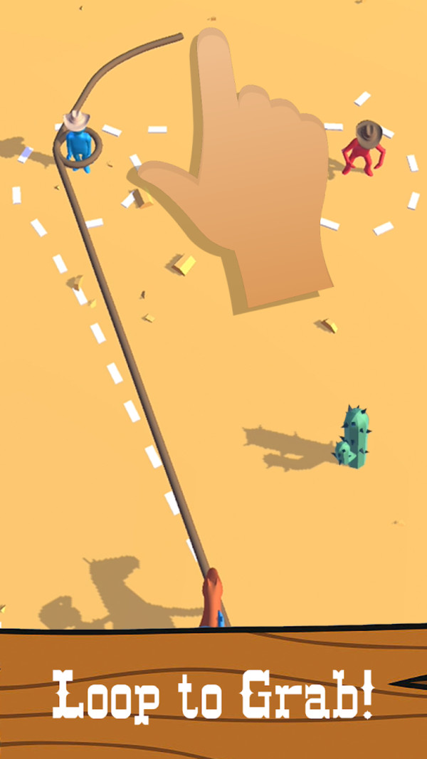 在牛仔绳索大战游戏中,玩家将来到西部,扮演一名骑马的西部牛仔,你需要将其他牛仔用你的套绳给套起来。游戏玩法非常简单,按住并划动屏幕就能掷出套绳,把所有人都套起来之后松开就能收回来。非常有趣好玩的休闲游戏。