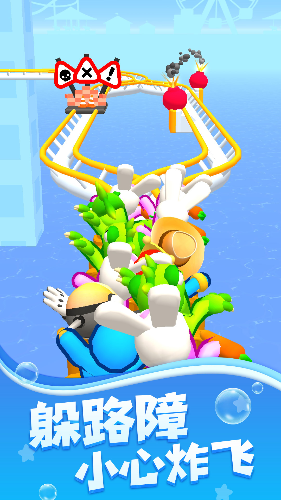 2、控制你的过山车,接到越多的小蓝人,可以获得更多的积分。