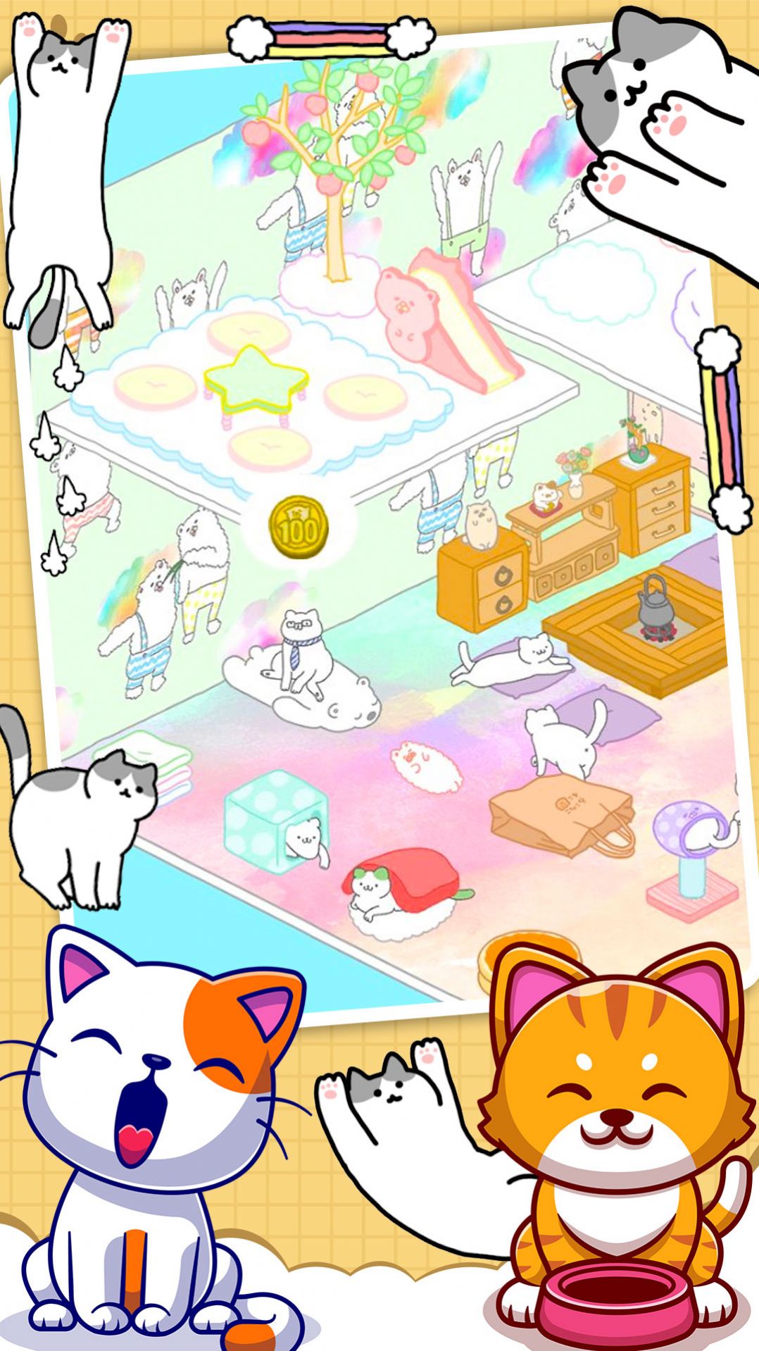 3.照顾这些小猫,帮助猫咪不断升级,解锁更多精彩的剧情。