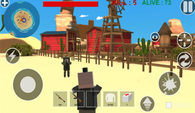 荒野枪战吃鸡这是一款枪战射击类型的战场吃鸡游戏。在这款荒野枪战吃鸡游戏中,玩家将在枪林弹雨的战场上不断的收集各种资源和武器装备,让自己战斗力的到显著提升,参与战斗精准的射杀敌人,完成激烈热血的战场枪战对决,在这像素风格的地图上驾驶各种载具以及强大的坦克进行炮轰射杀,成为荒野上的枪王。