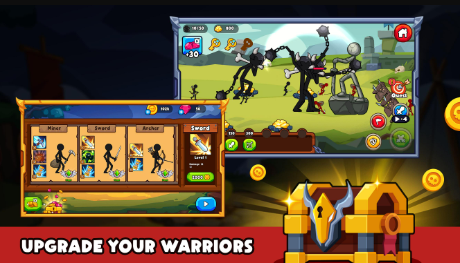 火柴人最强战争这款游戏带你体验不一样的火柴人战争剧情,不断的搜集开采各种资源,让你的军团更加的强大。