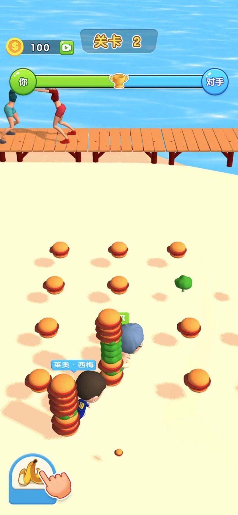 2、不断的捡起食物汉堡,然后抵达胖姐附近,和他一决胜负。